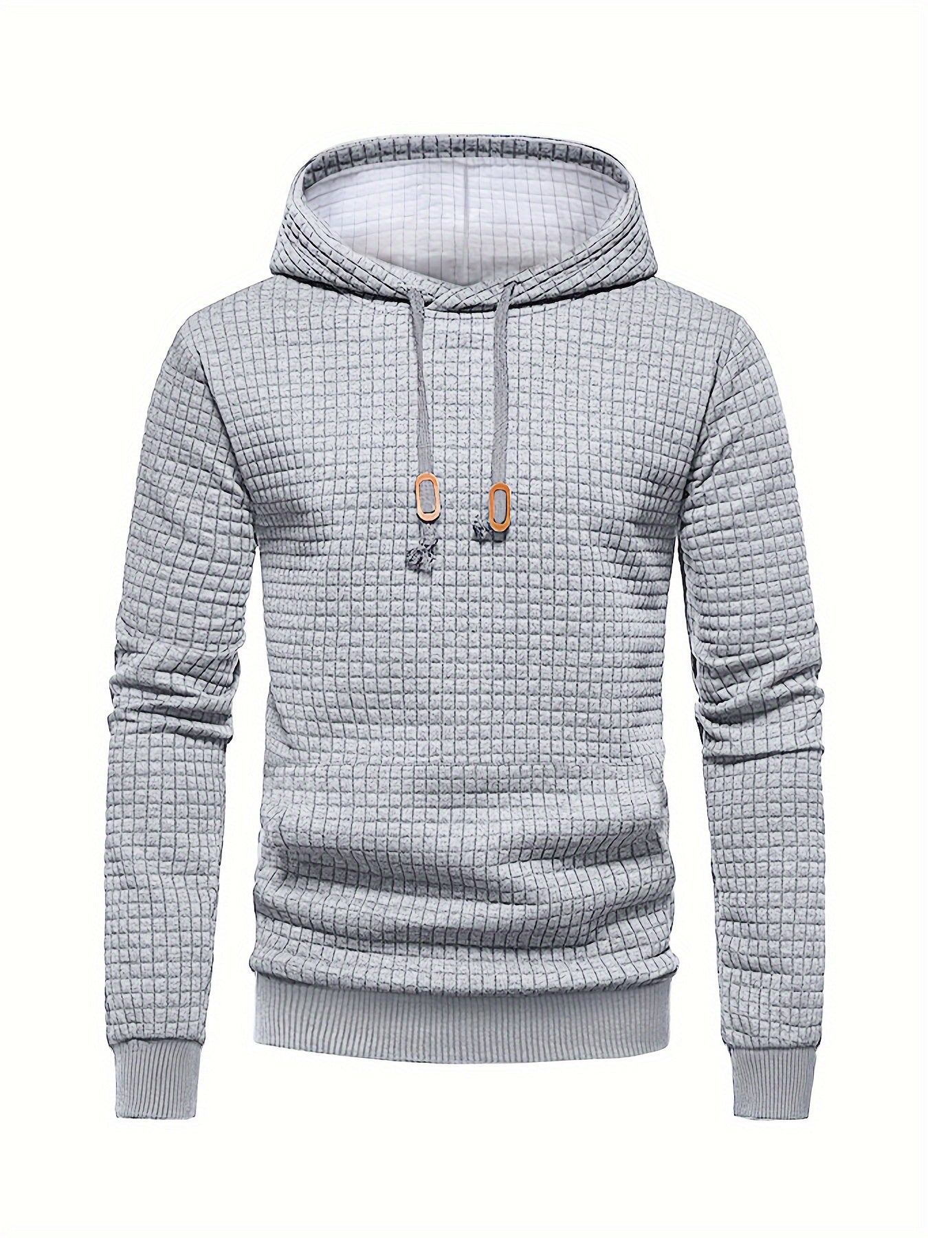 This hoodie features a clean, structured design with a quilted texture that gives it a unique and modern look. The hood includes long drawstrings with decorative details, adding a subtle touch of character. With fitted cuffs and a smooth hem, it offers a balanced shape ideal for everyday wear, layering, or relaxed moments at home.
